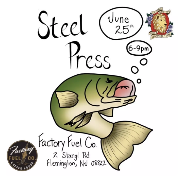 LIVE MUSIC with Steel Press band, Fri, June 25th, 6pm to 9pm, at Factory Fuel Co., 2 Stangl Road and Mine Street. factoryfuelcoffee.com