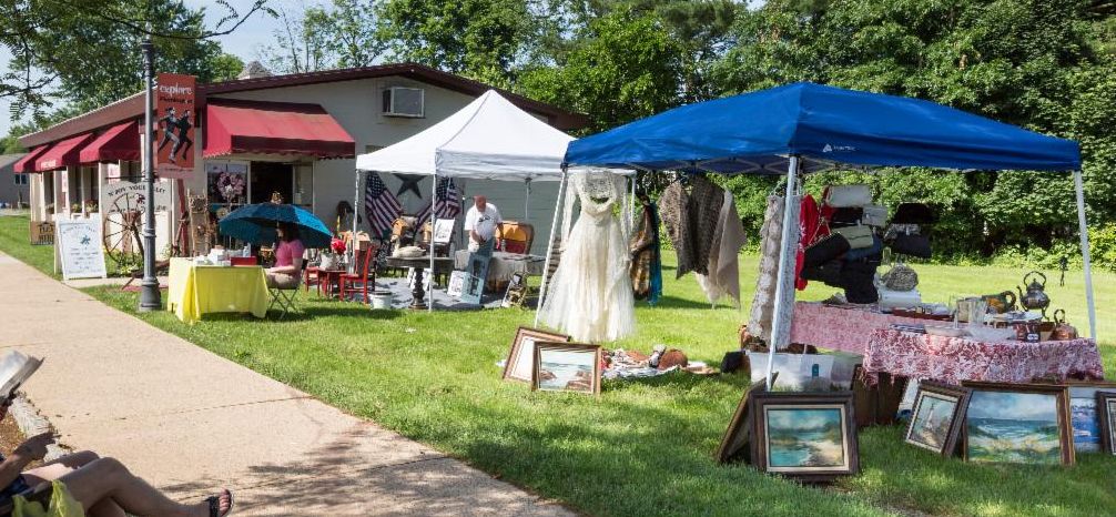 Explore Ye Old Antique and Curiosity Shop and Teaberry's Tea Room Carriage House AND sidewalk sales along Main Street! Under the BIG TENT on Stangl Road, visit Camp Flemington Antiques, N'Joy Yourself and other vendors. Don't miss sidewalk sales at Sage Boutique, vintage record sale at Garden State Salad, and book sale at Act Two Books!