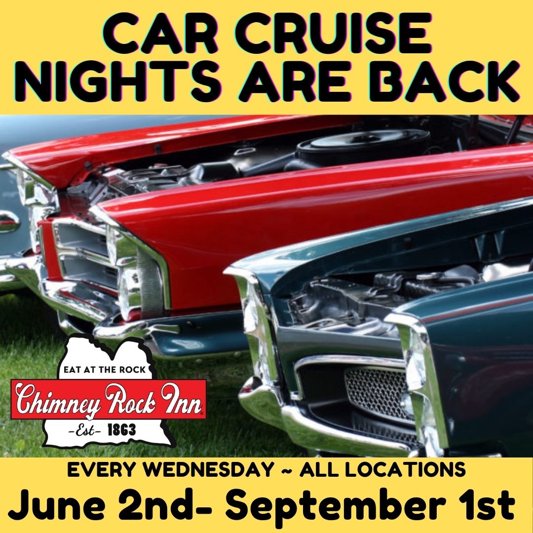 Cruise Nights at Chimney Rock Inn, Wednesdays, 4 to 8pm, 41 Route 31. Food, drinks, and fabulous cars! Raffles and giveaways.