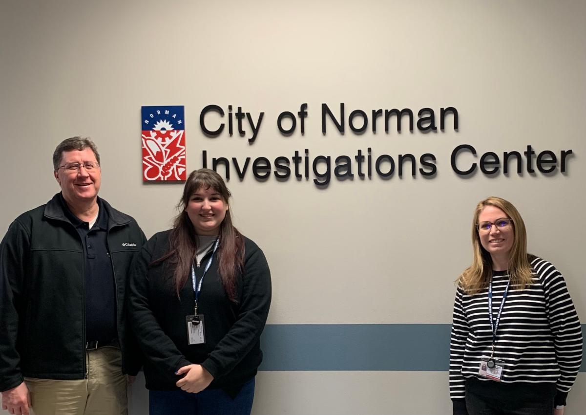 The Anne and Henry Zarrow School of Social Work has entered into an exciting partnership with the Norman Police Department this semester. Capt. Eric Lehenbauer contacted the department seeking to be a field practicum site for an MSW student interested filling the role of victim advocate for the NPD. Lehenbauer, site preceptor, has welcomed Bonni Goodwin (OU field instructor) and Morgan Albright (MSW student) into the department to begin her concentration practicum as a victim advocate. “I cannot begin to express my excitement about being able to learn from some of the finest police officers and detectives in Norman," said Albright. “This partnership has opened the opportunity to work within an interdisciplinary team of police officers, detectives and the general public, as well as various other criminal justice roles. Through my experience working with the NPD, I am able to use my social work education and knowledge to not only support the survivors of crimes, but to also support the officers. In addition to that, I am able to gain valuable insight to viewing advocacy, resource and community work through a criminal justice lens, alongside the social work lens.” Victim advocacy assists victims of crime as well as law enforcement investigating those crimes. Advocates are responsible for assessing and identifying the needs of victims during a difficult time in their life and connecting those victims to resources to support and meet their needs. An advocate is also responsible for providing awareness of and access to certain rights available to victims of crime. Victim advocates also provide support for officers during the length of the investigation by serving as a liaison between law enforcement and the community. Through developing a trusting working relationship with law enforcement, advocates are able to assist in achieving the goals of criminal justice while sharing valuable perspectives and awareness of the impact of trauma on victims. Through this new partnership with the NPD, OU School of Social Work students are afforded the opportunity to experience and participate in the power of collaboration between criminal justice and social work.