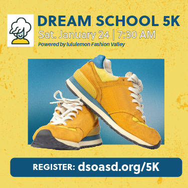 Come walk, run, cheer, and support the Dream School at this fun event powered by lululemon Fashion Valley; all proceeds directly benefit DSOA. All paces are welcome and the event is open to kids, strollers, and supporters of all kinds. Register online to be a runner / walker. You can also be part of the fun by helping at a cheer station halfway along the route! Sign up to cheer: Dream School 5k Cheer Station.