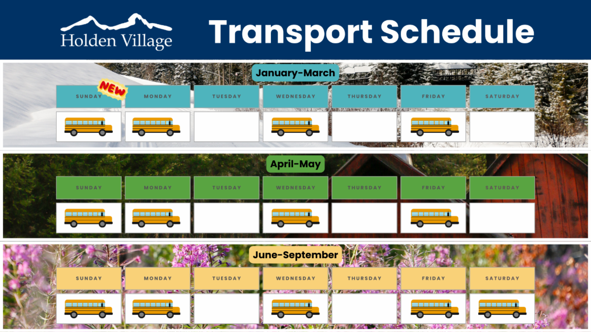 This winter transport arrives and departs Holden four days a week, including Sunday! This is an additional possibility compared to previous years.