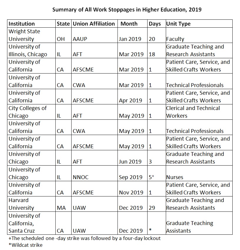 This month's newsletter includes the National Center's work stoppage report for calendar year 2019. It supplements data from calendar years 2012-18, which is analyzed in an upcoming article by National Center Executive Director Bill Herbert and National Center Affiliated Researcher Jacob Apkarian, Assistant Professor of Sociology, York College.