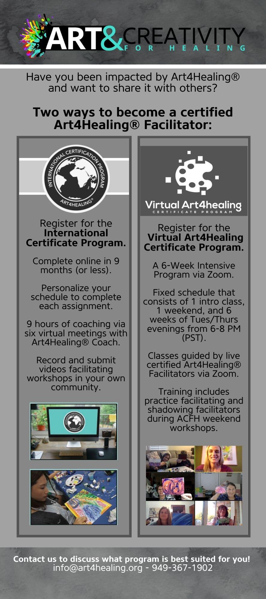 We are proud to offer our Virtual Art4Healing® Certificate program, a six-week intensive certificate program offering live online classes in the Art4Healing® method.