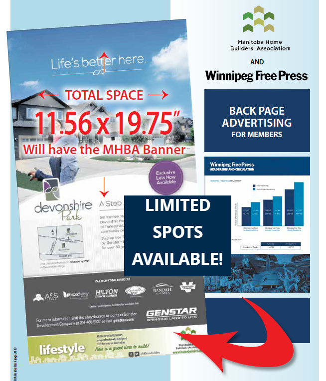 Once again, the MHBA has purchased the back page of the Saturday and Tuesday editions of the 2023 Winnipeg Free Press Homes Section. We have secured a great rate this year as part of your membership benefits!