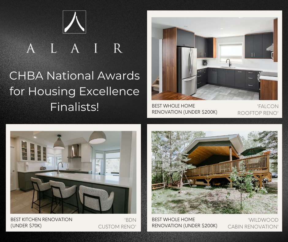 Congratulations to Alair Homes of Brandon for being announced finalists for the CHBA National Awards for Housing Excellence!