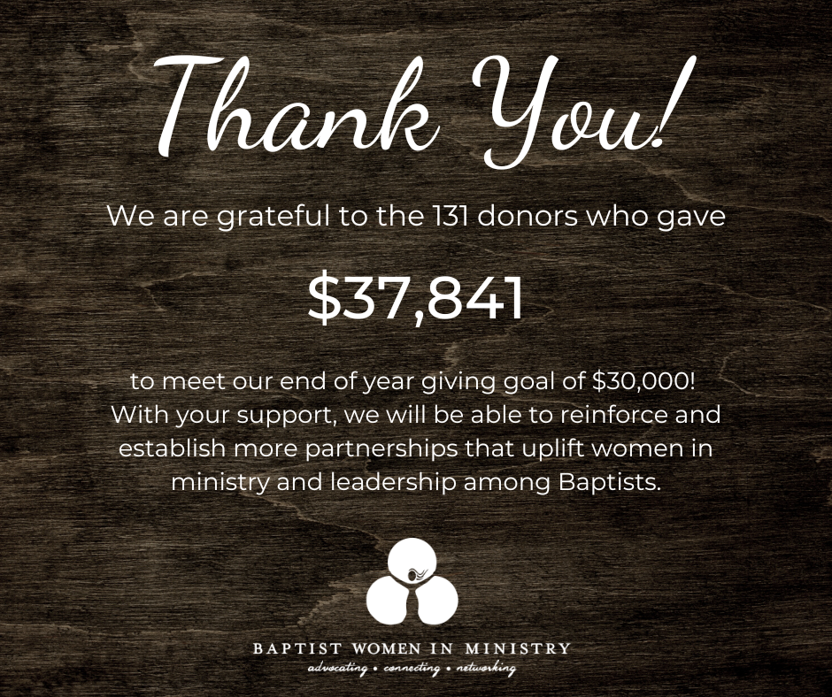 If you know a Baptist woman who has been ordained or will be ordained, please email names and pictures (if possible) to lynnbrinkley@bwim.info. BWIM wants to share in celebrating congregational affirmation of all women in ministry, and it helps us to keep records of all of the women in Baptist life who are ordained.