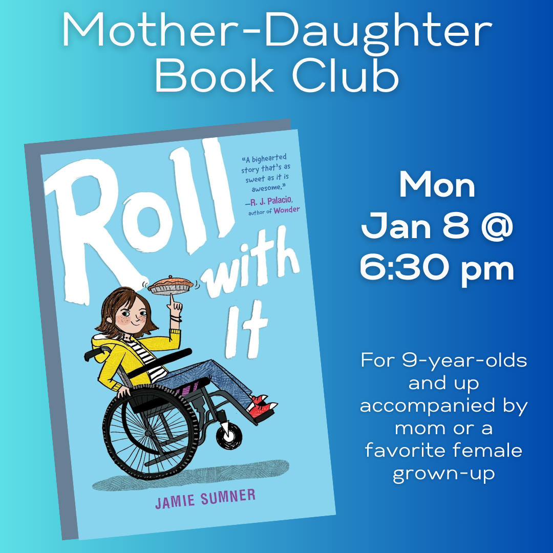 This in-person book club is for 9-year-olds and up accompanied by mom or a favorite female grown-up. Join us for book discussion, an activity and snacks. For this month's meeting, please read Roll with It by Jamie Sumner.