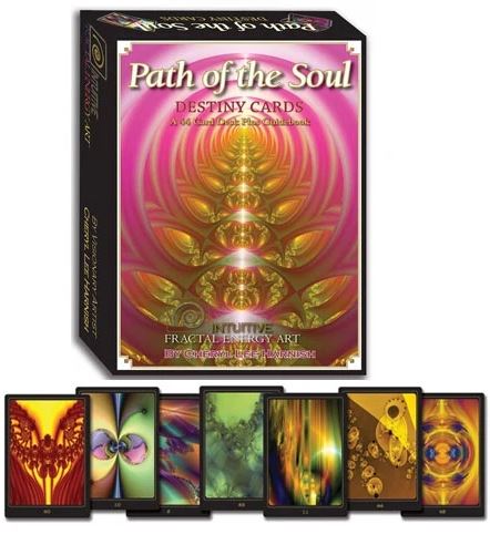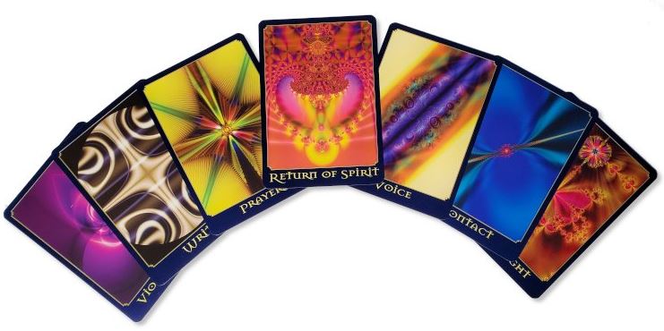 Each gold glided card contains an intuitively channeled Fractal Art image, which emanates a unique vibration and meaning.