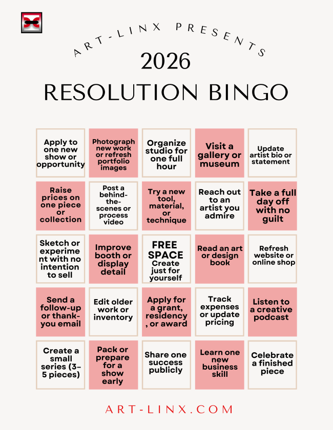 Whether 2026 is about refining your craft, strengthening your business, or simply reconnecting with the joy of making art, a bingo card offers a supportive and motivating way forward, one square at a time.
