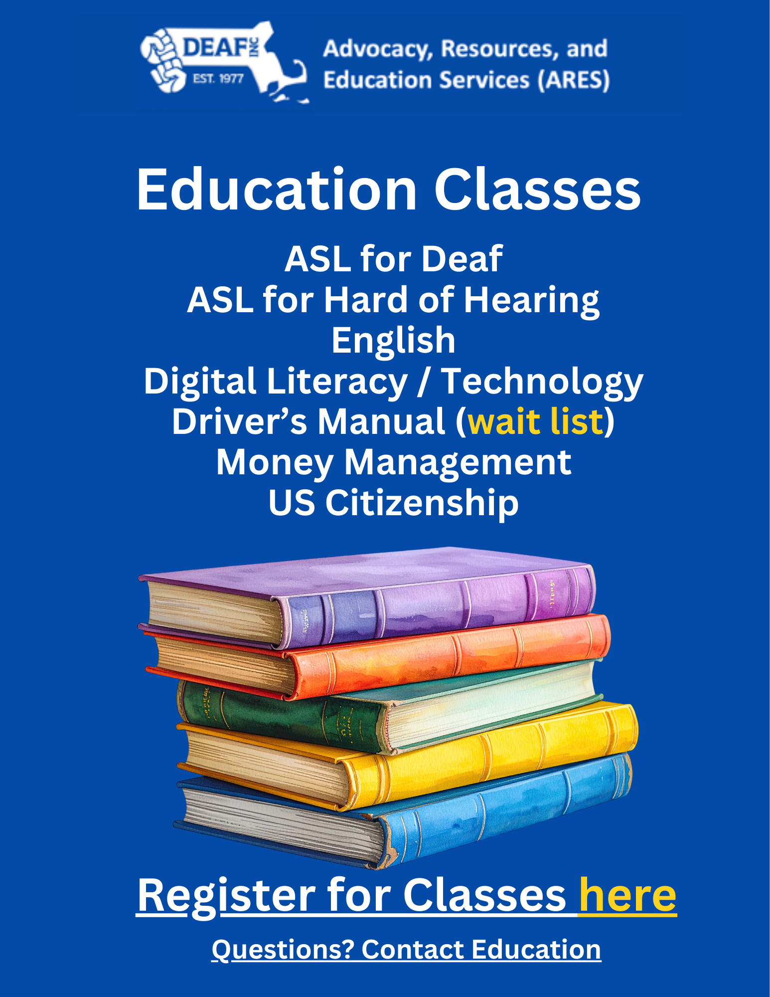 DEAF, Inc. Advocacy, Resources, and Education Services (ARES). Education Classes