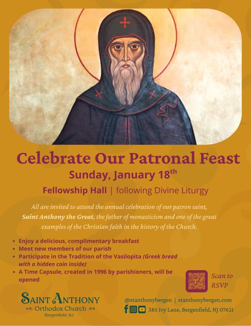 Parish community members are invited to attend the annual celebration of our patron saint, Saint Anthony the Great, the father of monasticism and one of the great examples of the Christian faith in the history of the Church.