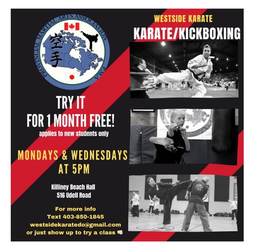 Email westsidekaratedo@gmail.com or text 403-850-1845 for more information or better still, just show up to try a class.