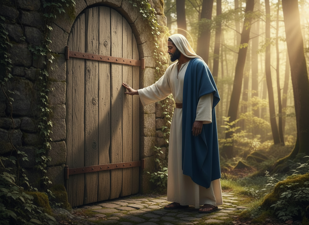| | Happy New Year from the National Black Catholic Congress | | This AI-generated image by the NBCC depicts Jesus knocking at a door without a doorknob, symbolizing that He can only enter if invited. | |
