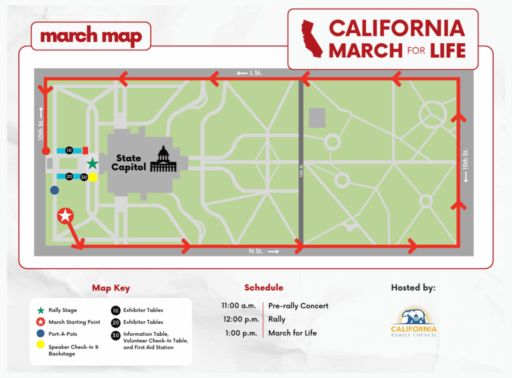 The March for Life will begin immediately following the Rally – usually around 1pm
