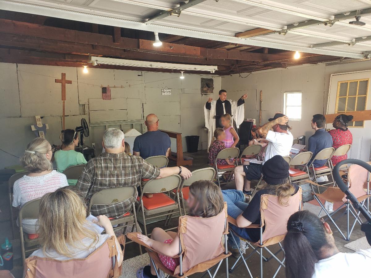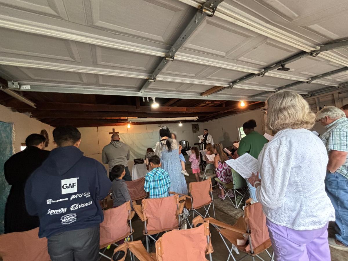 The church began by inviting people to gather for Evening Prayer every other Sunday. Over the summer, we outgrew our living room and moved into an empty garage that someone connected to the mission generously allowed us to use. In the fall, a local Baptist church opened their building to us, where we currently gather every other week for Holy Eucharist as we work toward launching weekly Sunday worship in a way that will be viable for the long term.