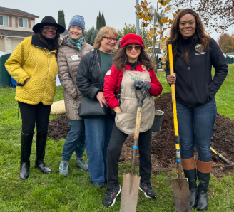 Supervisor Shanelle Scales-Preston (District 5), Civicorps, Ambrose Recreation & Park District, the Ambrose Garden Club, and local youth leaders made up the more than 30 community members who showed up for the demonstration. This planting is just one step in a larger effort to grow more shade and climate-resilient neighborhoods.