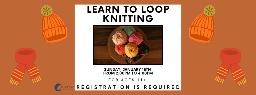 Don't get thrown for a loop this winter! Cozy up and join us for a beginner's class and learn how to loop knit! We have an option of a scarf for beginners and a hat for those with a little more experience. This is a perfect intergenerational activity for a Sunday afternoon!