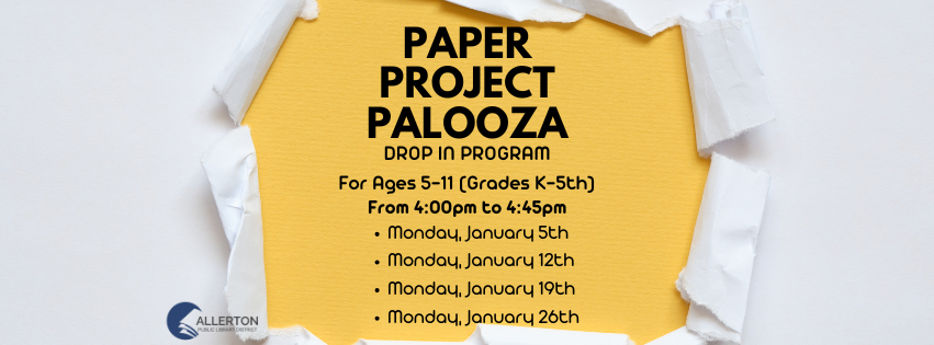 Join us on Mondays in the program room for a quick paper craft! Each week this month we will have a paper craft ready to assemble and decorate.