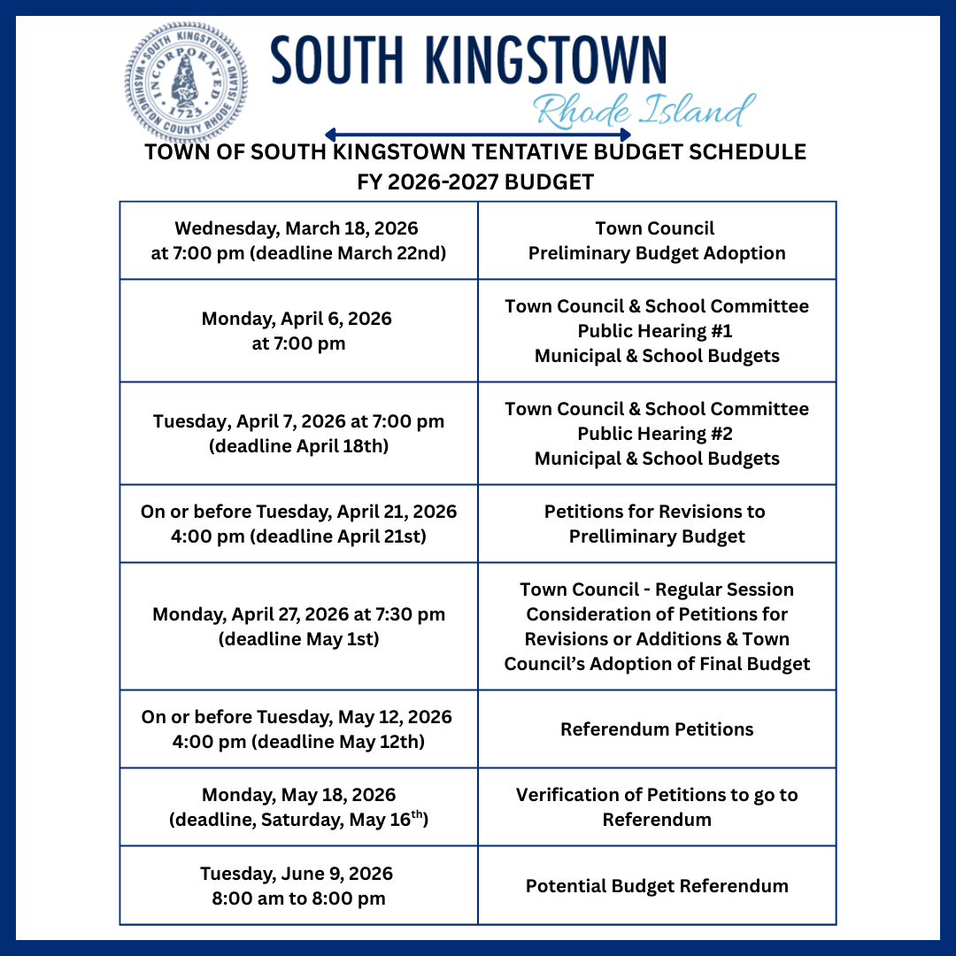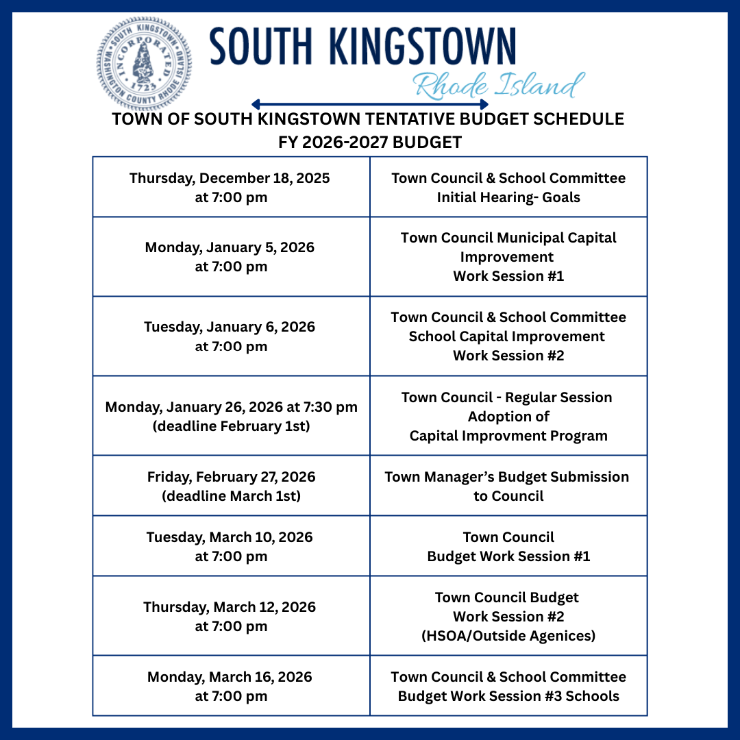 Town of South Kingstown Tentative Budget Schedule