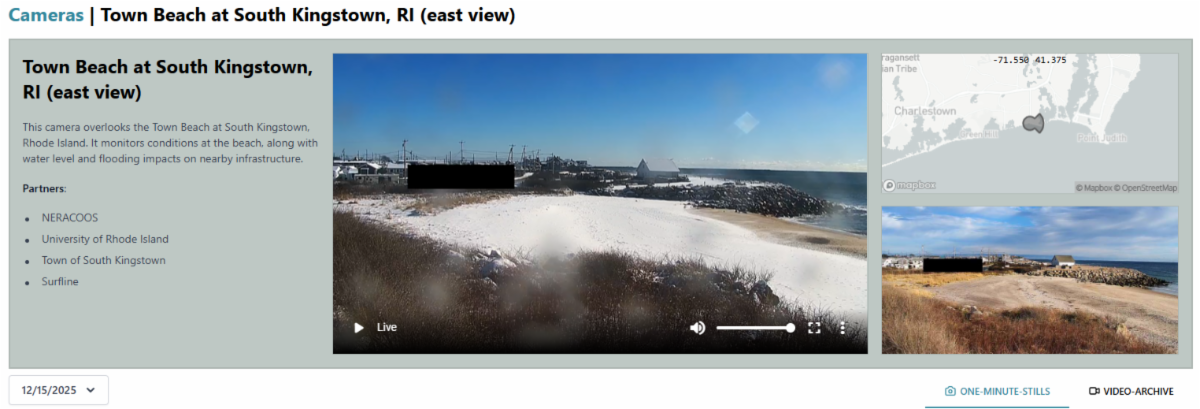 A new live coastal webcam has been installed at South Kingstown Town Beach as part of the Webcam Coastal Observation System (WebCOOS), a NOAA-funded project led by SECOORA and its partners. The camera allows residents to view real-time beach conditions and track changes over time, while also providing valuable data to help staff monitor coastal storms and significant weather events. Residents can explore conditions at Town Beach and throughout the broader coastal camera network by visiting the Live Town Beach Camera and the SECOORA website for more information.