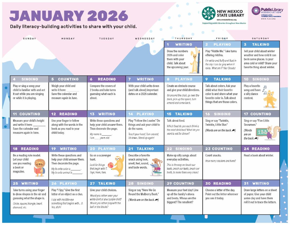 2026 Early Literacy Calendar available now