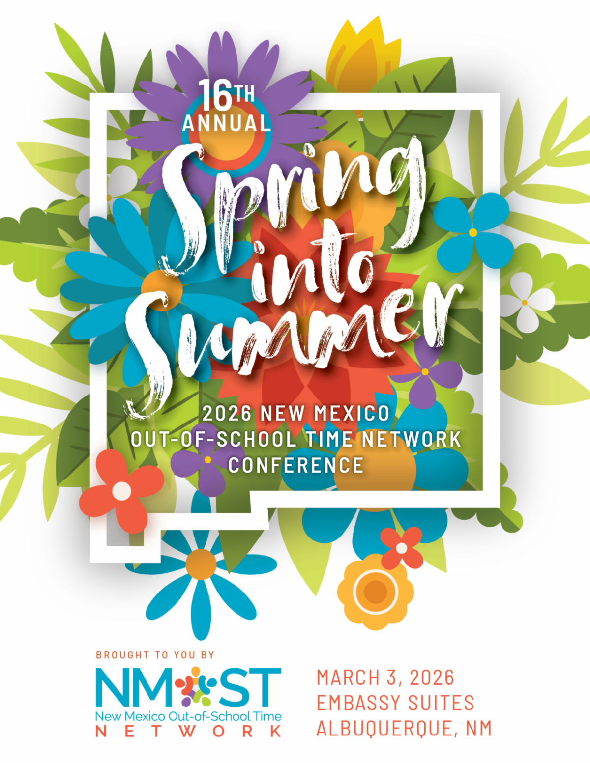 The New Mexico Out-of-School Time Network (NMOST) invites you to attend our IN-PERSON 16th Annual Conference: Spring into Summer 2026! This is our first in-person conference since 2019 and we can't wait to see you there! It will be held at the Embassy Suites in Albuquerque on March 3rd.