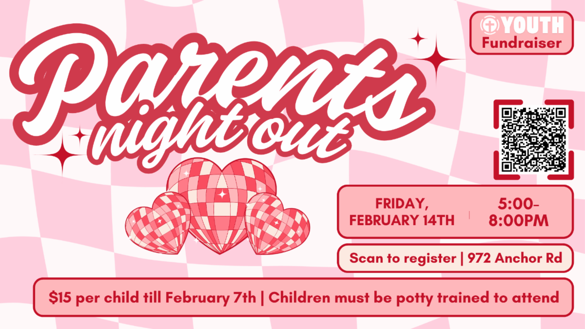 To help raise money for youth camp, our students are providing childcare for parents on Valentine’s Day! From 5-8pm, children dropped off will get to play games, make crafts, eat pizza, and enjoy a movie. If you register by Saturday, February 7th, it is $15 per child. Any registrations after February 7th will be $20 per child. Registration will close on Thursday, February 12th, to allow us to have a set number to purchase food and supplies.