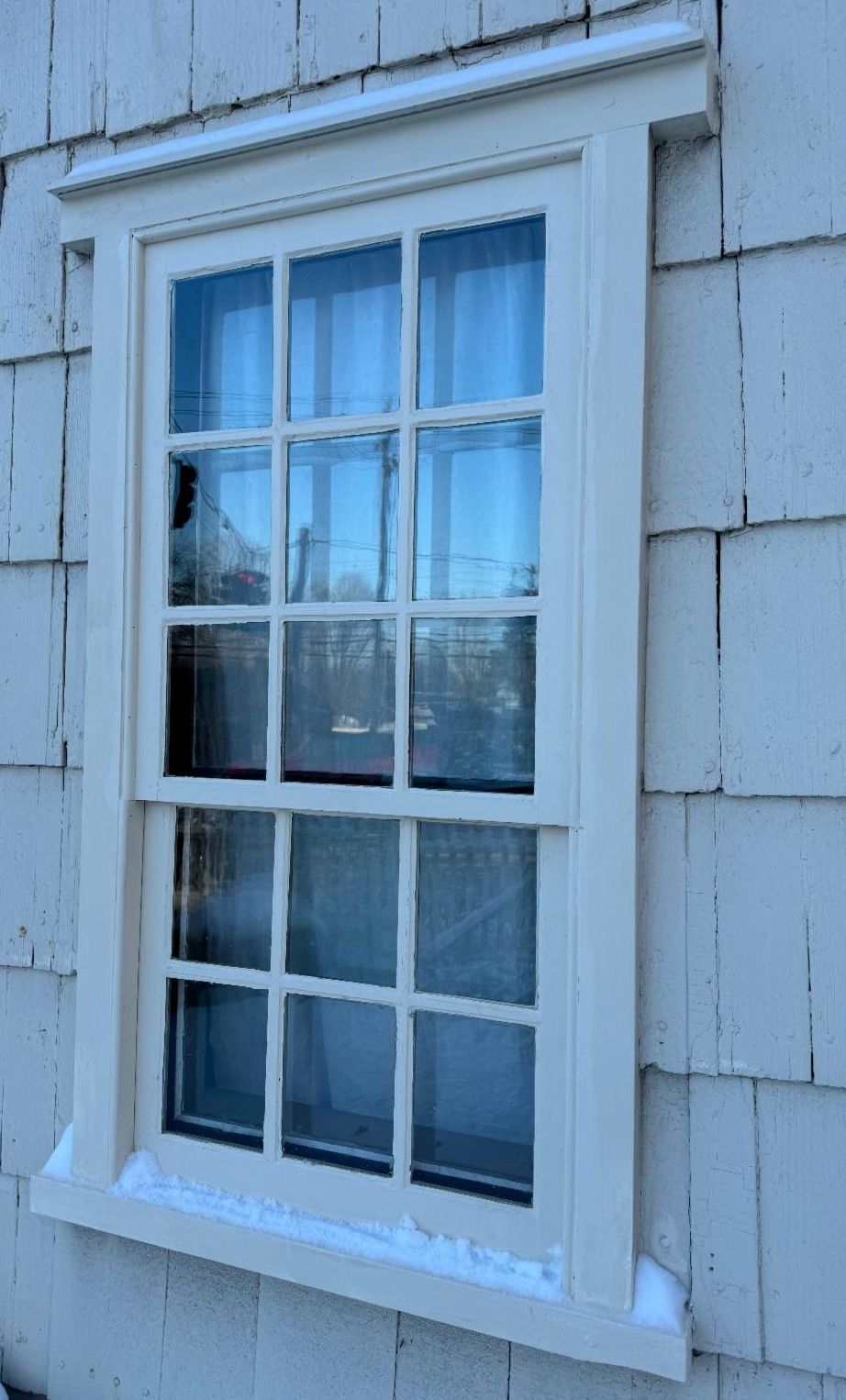 Below is a before and after of one (out of eight) of the restored windows.