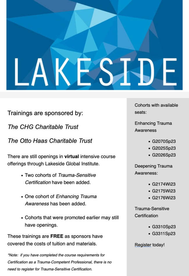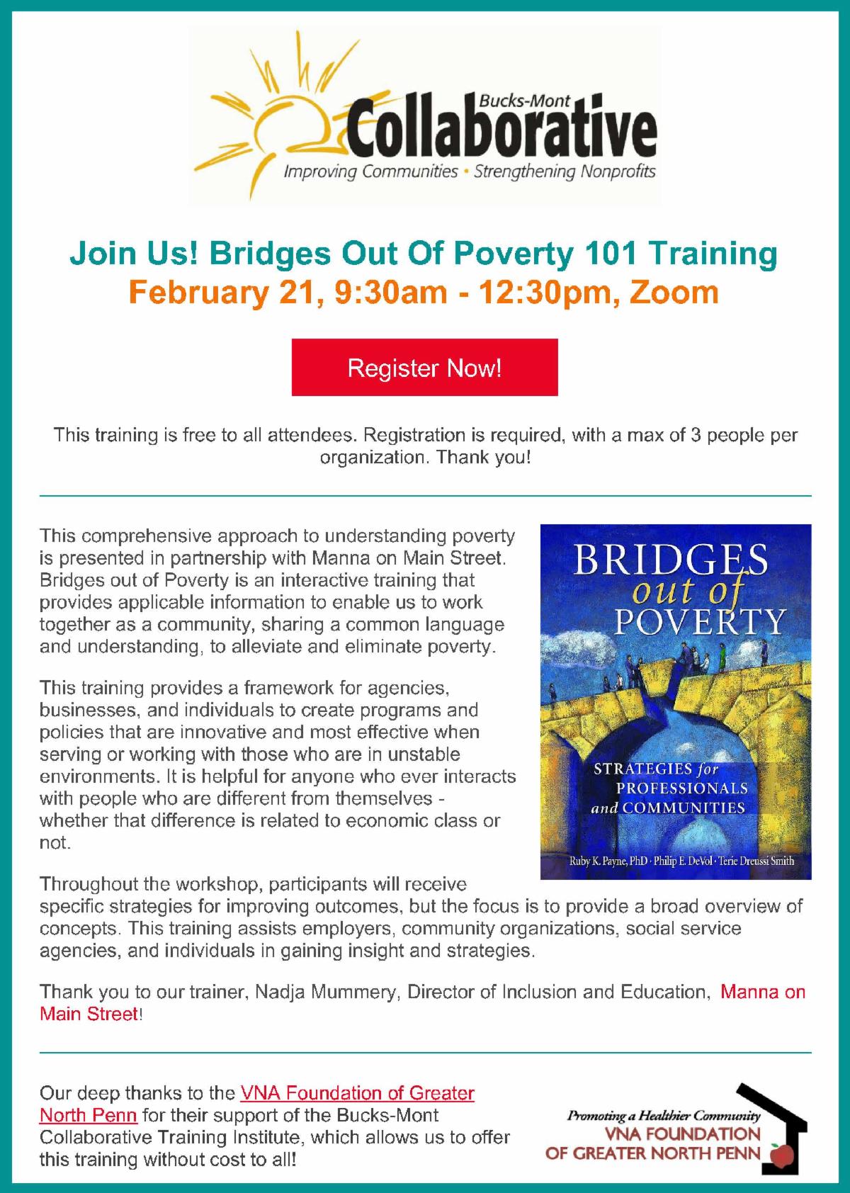 This series is co-hosted with ICN and TCN, and is free and open to this region due to the generosity of the Series Sponsor, the United Way of Bucks County. Thank you! Each workshop will deepen your learning as a standalone training, with greatest impact through series participation.