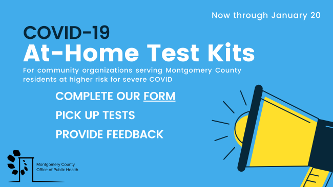 "As higher rates of respiratory illness continue to affect our communities, Montgomery County is pleased to make COVID-19 at-home test kits available for community organizations serving residents at higher risk for COVID and severe illness.