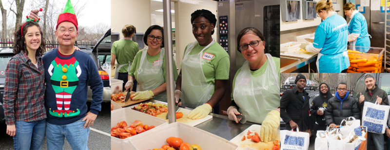 Volunteers (like Vicky & Ty Shen, pictured left) prepared and delivered holiday meals to our