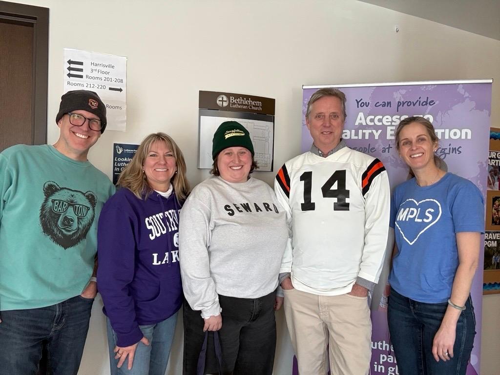 | | Pictured above: LPGM's U.S.-Based staff rep their Minneapolis neighborhoods during a staff theme day on January 28. L to R: Dan Ruth, Bethany Krepela, Shannon Mahedy, John Anthony, and Laura Feile. | | | |