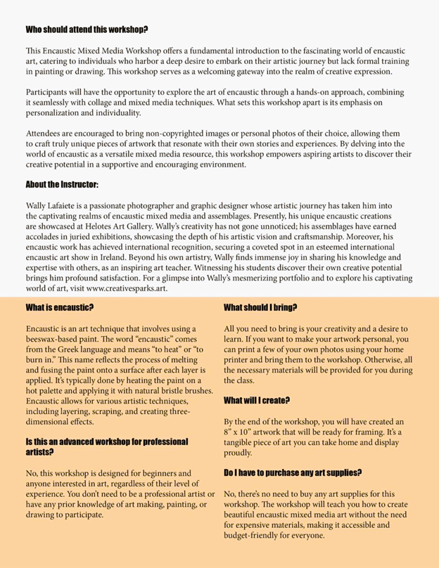 2. Monthly newsletter, delivered to your inbox, which keeps you in touch with NBAL, community art events, and upcoming workshops.
