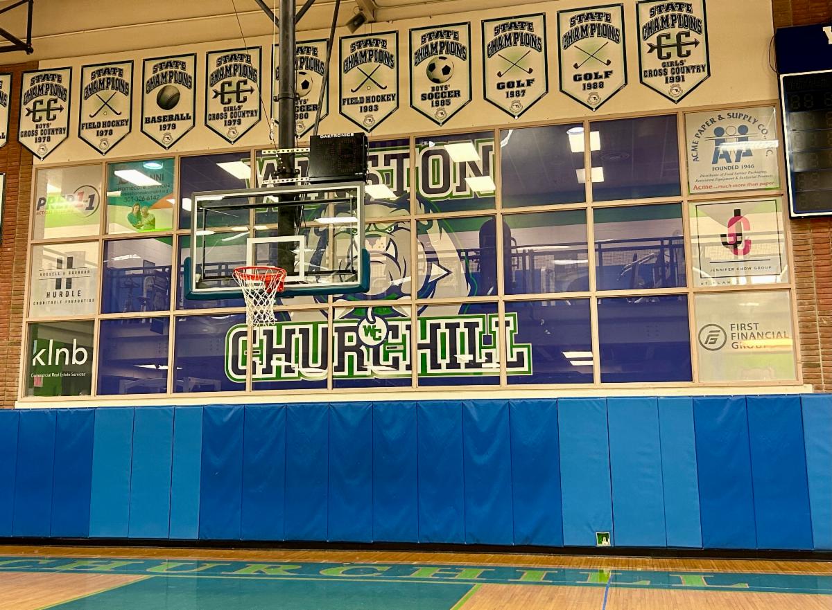 Likewise, a Gymnasium Glass Pane sponsorship package provides incredible exposure for your logo to Bulldog and visiting school fans for all our gym teams, including boys and girls basketball, volleyball, bocce, and wrestling plus the hundreds of people from organizations that use our gym facilities after hours and on the weekends including youth basketball leagues and even an adult badminton group. Your logo is streamed on a digital screen throughout the games in addition to a position on a large glass window pane on the main gym wall. Come to an upcoming girls' or boys' basketball game, a wrestling meet, or a bocce match, and check them out!