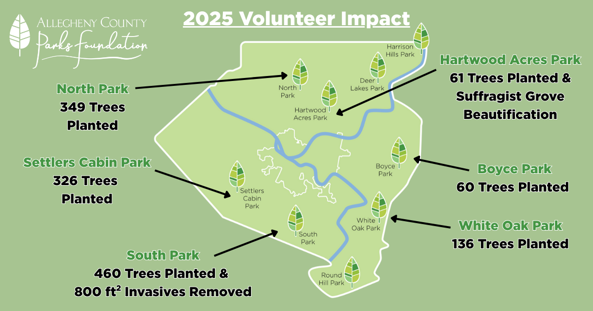 As we welcome a new year, our staff would like to extend a heartfelt thank you to everyone who supported the Allegheny County Parks Foundation in 2025. Because of you, we were able to invest in projects that improve, conserve and restore the county parks for the benefit of everyone who visits them.