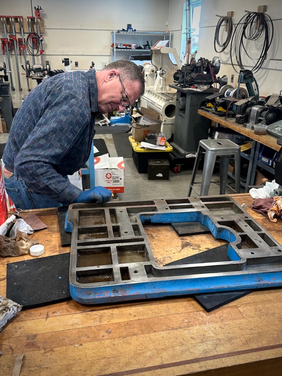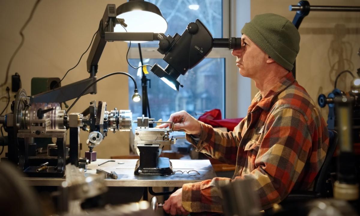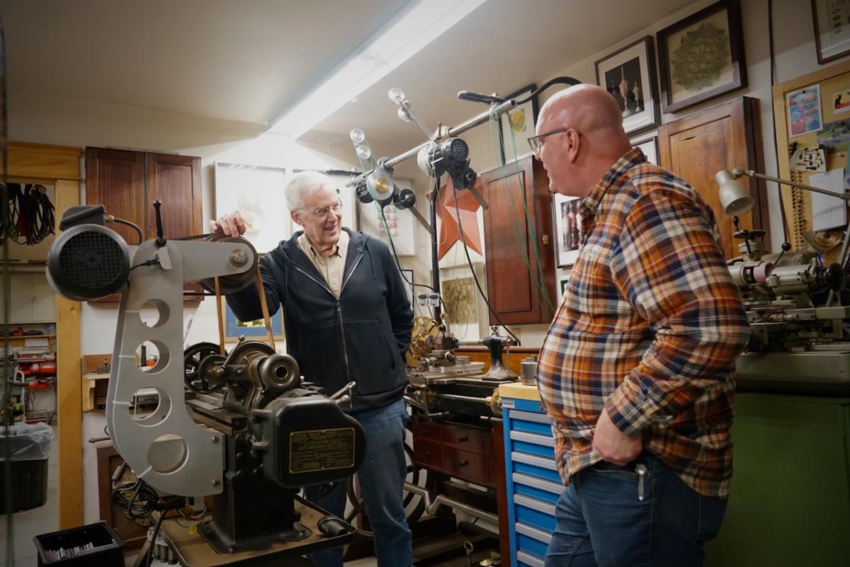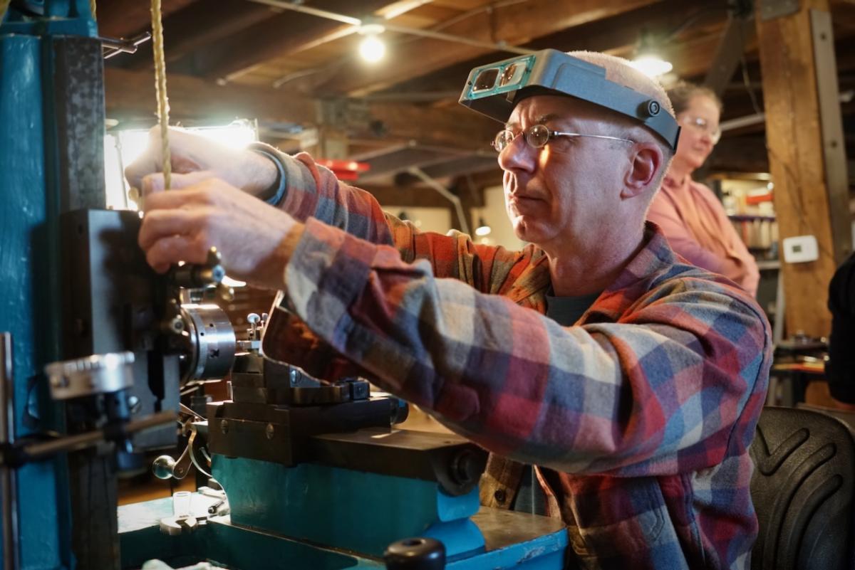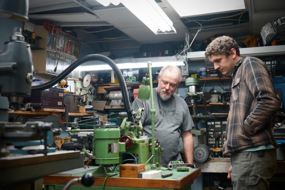 | | | Scale model of the full-sized tool chest Zach made | The next batch of table parts ready for assembly | | | | Keep up with Zach’s current full-scale project, this incredible Georgian-style sideboard, by following him on Instagram. | | | Both NBSS and Plumier have a model airplane from the collection of the late architect, amateur cabinet maker, and clock collector Randal Thompson hanging from the ceiling. | | | The Plumier winter storm tour continued even further north-east with a visit to the shop of legendary complex turner and tool maker Fred Armbruster in Maine. Fred gave us a tour of his shop and his unbelievable collection of work done by himself and members of the complex turning community. As always, Fred was extremely generous with his time and hard earned knowledge of everything to do with complex turning. | | Fred introduces Christian to his multistage geometric lathe from the Swiss mint | | There was particular interest in his current project. He is building out a full lathe around the orphaned headstock of a very early Holtzapffel rose engine. The headstock is unnumbered and has a completely different construction than other Holtzapffel rose engines like Plumier’s No.1636. Like all of Fred’s work, this rose engine is shaping up to be a stunning machine. In addition to the brass headstock, what is likely the original rosette barrel will also be used. It will be great to see this interesting piece of complex turning history put back into service in a suitable way. Fred has been sharing updates of the project on Instagram and on the OTI Facebook page. | | | Fred's complete reproduction of the famous Studley tool chest | | | From Maine, we began our meandering way back west with a stop in New Hampshire to visit members Denis and Heidi Carignan of Carignan Watch Company. | | Denis gave us a tour of his shop and shared what he has been working on. Largely self-taught, Denis is like a MacGyver of watchmaking. Whatever the problem is, he will engineer a solution. His shop is full of these solutions in the form of extremely sophisticated home-built machines and processes. He embraces technology in new and exciting ways while using his extensive experience in traditional methods and hand skills to back it up. Denis’ mad-genius tendencies are kept in check by his wife Heidi who runs the business and customer-facing side of the operation. Carignan Watch has found a particular niche in the extremely difficult job of vintage watch dial refinishing. | | Denis gave us a close look at this antique egg watch that he had just finished restoring in collaboration with Plumier member Steve Franke, who spent a week with the Carignans learning from Denis and lending his perspective as a clockmaker to the project. See the before and after pictures along with more of their work on the Carignan Watch Company Instagram. | | From the Carignans’, we continued west over the Connecticut River into Vermont to visit the American Precision Museum at the old Robbins and Lawrence Armory in Windsor. The armory, built in 1846, was a part of a revolution in precision that took place in the Connecticut River Valley, resulting in the “American System’ of manufacturing with interchangeable parts. | | The Robbins and Lawrence Armory in the 1860s | | | | Gunstock copy lathe first invented by Thomas Blanchard in 1818 | | Today, the museum houses an impressive collection of early American precision machine tools. There is also a focus on interactive learning, with activities and workshops aimed at getting children interested in engineering and potential careers in manufacturing. The museum is currently under construction to expand to a second floor later this year. Learn more about the museum from their website. | | |
