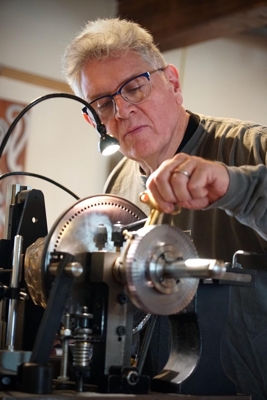 | | | There was a particular piece that stood out while touring Fred Armbruster’s collection during this visit. | | This stunning pair of dividers, or compass, was made by the incomparable Warren Greene Ogden Jr. as a faithful replica of an historic example. The late Warren Ogden, a previous owner of 1636, author of The Pedigree of Holtzapffel Lathes, and a prolific contributor to the complex turning community, maintains a significant presence at Plumier. Without the work of dedicated (frankly obsessive) enthusiasts and practitioners like Ogden, much of our knowledge of complex turning would not have made it to this century. This pair of dividers demonstrates the calling of craft at the highest level of skill along with an appreciation for our collective craft history that Plumier seeks to carry on from Ogden’s example. | | | |