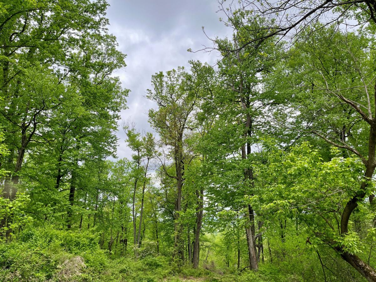 Most of the property has never been farmed, and it contains a healthy forest and understory. Streams flow through the woodland, and an area of groundwater seeps support the growth of wet woodland plants such as sensitive fern, jewelweed, and skunk cabbage. Native sedges, ferns, mayapple, and other native plants compose the understory of much of the woodland under a diverse canopy of native hardwood tree species.