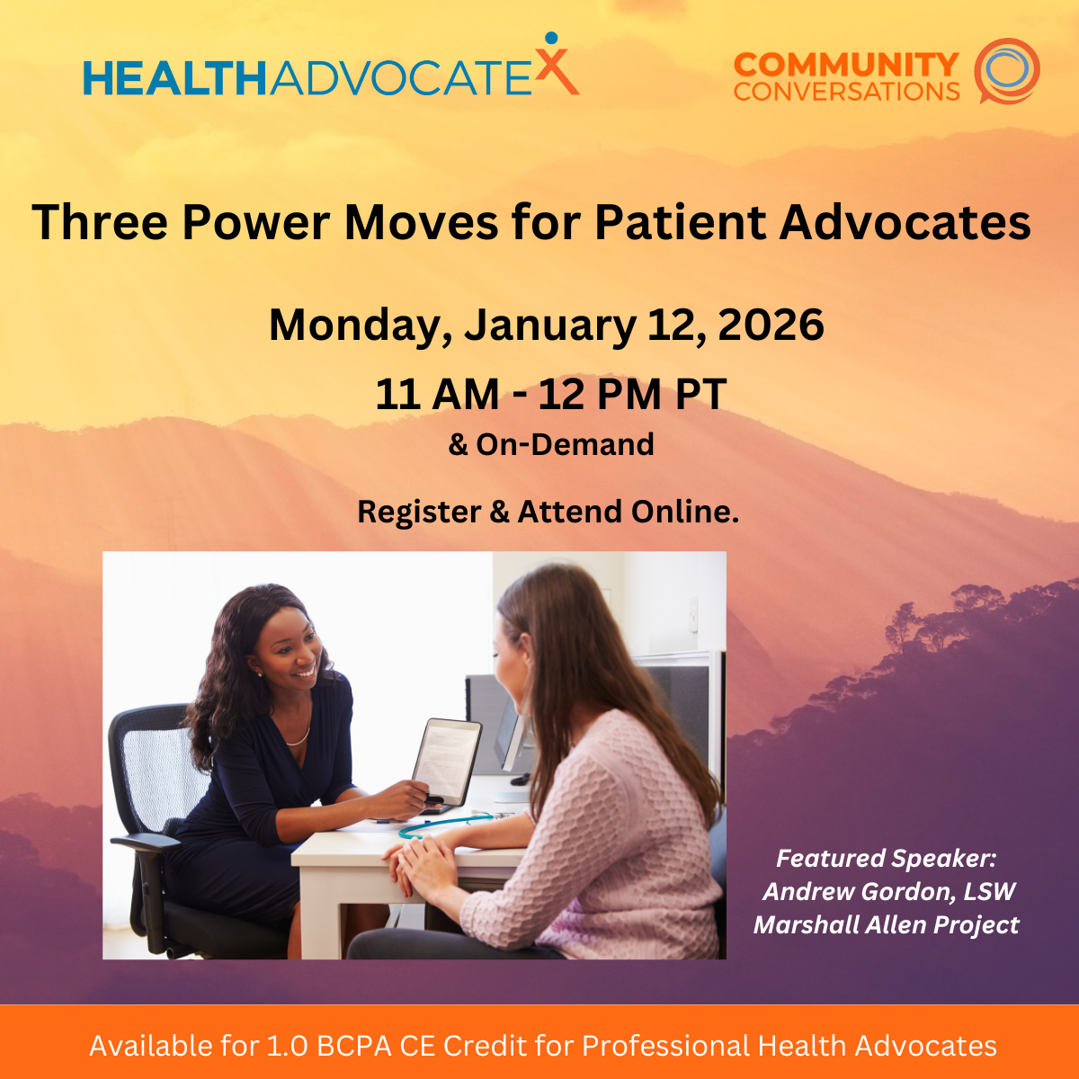 Cost: Free to the general public. Purchase 1.0 CE Credit for $10 for HealthAdvocateX Members; $30 for Non-Members.