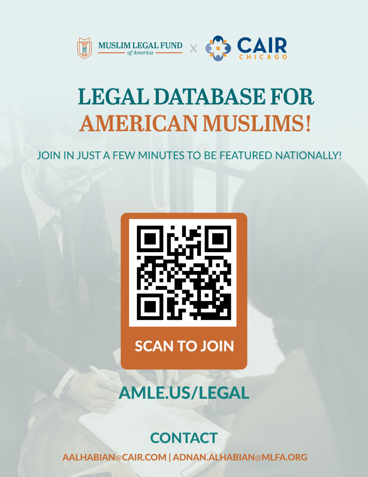 CAIR Chicago and Muslim Legal Fund of America (MLFA) are building something our community has needed for years: a simple, trusted way to find legal support fast. The American Muslim Legal Ecosystem (AMLE) connects people to verified legal organizations and resources when the stakes are high.