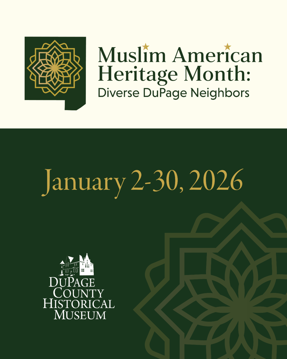 Muslim American Heritage Month: Diverse DuPage Neighbors is a month-long exhibit celebrating the rich history, culture, and contributions of Muslim Americans in DuPage County. Through personal stories, historical artifacts, and community highlights, the exhibit honors the diverse voices that have helped shape the region. Join the Museum this January as they explore the experiences and heritage of their Muslim neighbors.