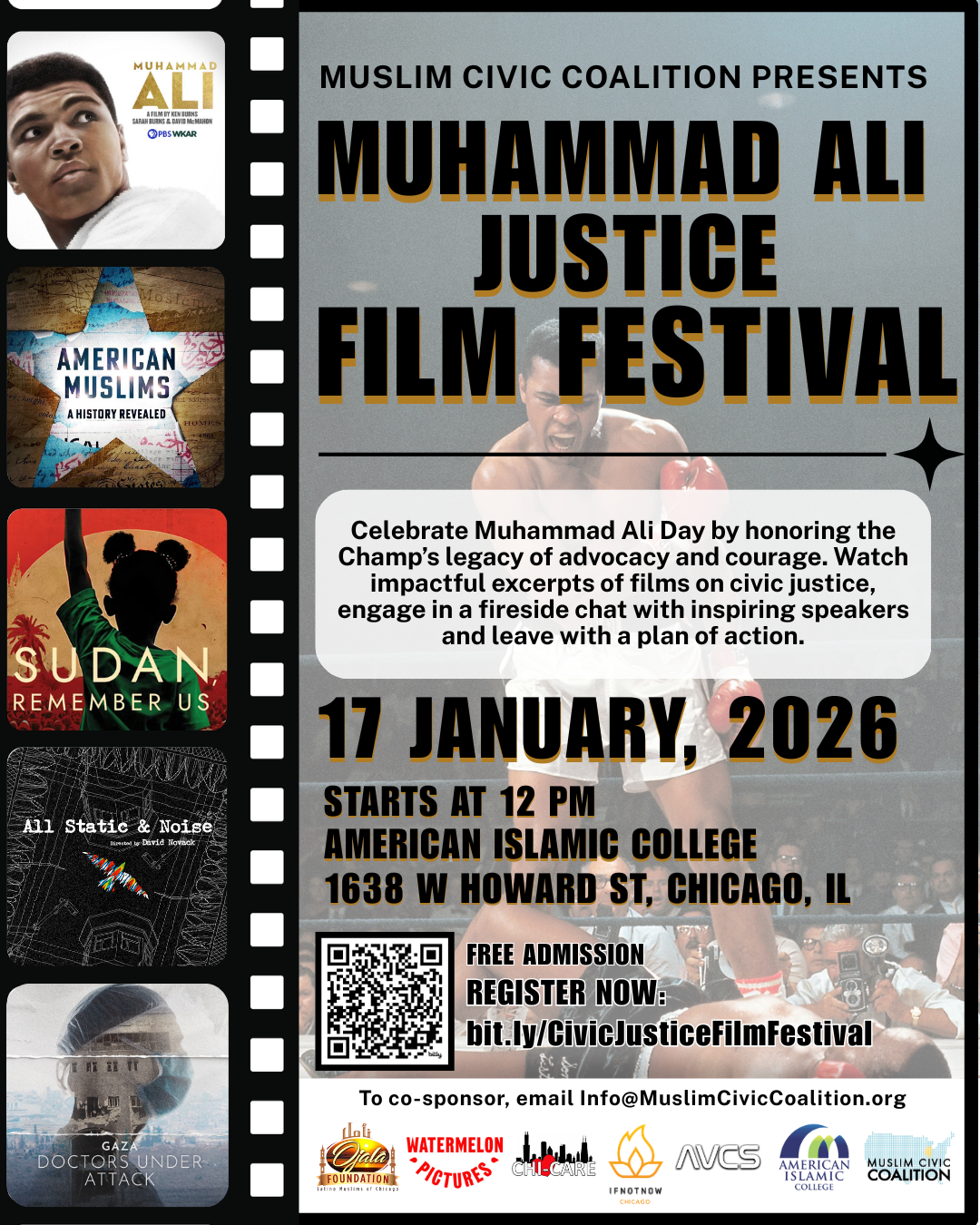 Outreach—Muhammad Ali Justice Film Festival, January is Muslim American Heritage Month, 'Watch the Voice of Hind Rajab' in Chicago