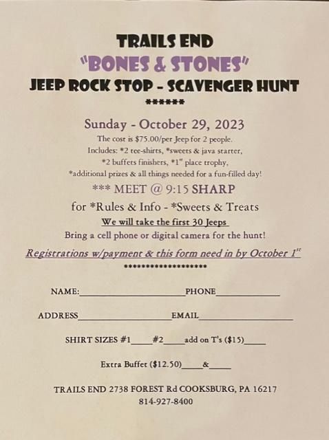 Print form , fill in, and return with entry fee. We are taking the first 30 Jeeps !