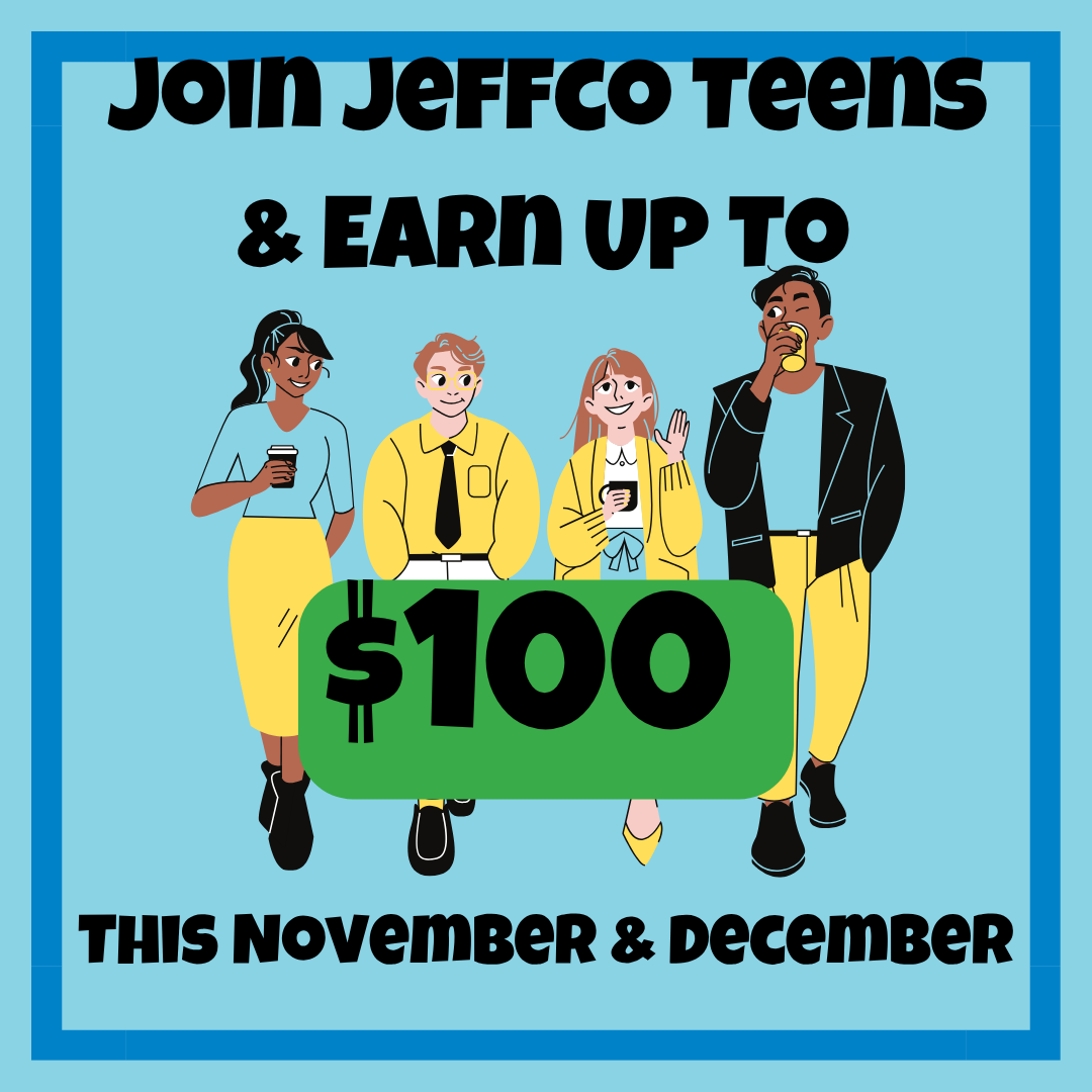 - Earn up to $100 by attending Jeffco Teens and Coalition Meetings this Quarter!