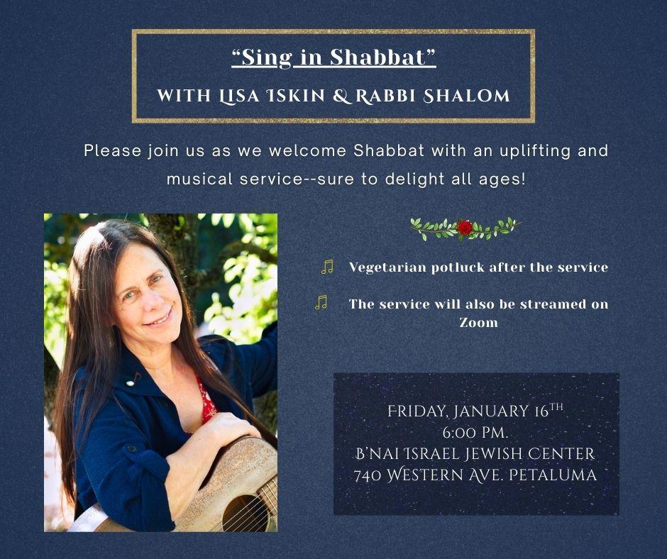 With Lisa Iskin & Rabbi Shalom FRI, JAN 16 • 6 PM B'nai Israel, Petaluma