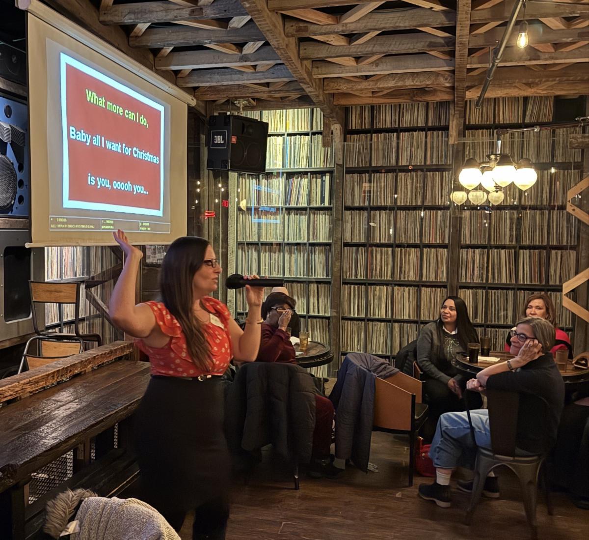 Elisa Fernandez-Arias, Employment Specialist, belts out a holiday classic.