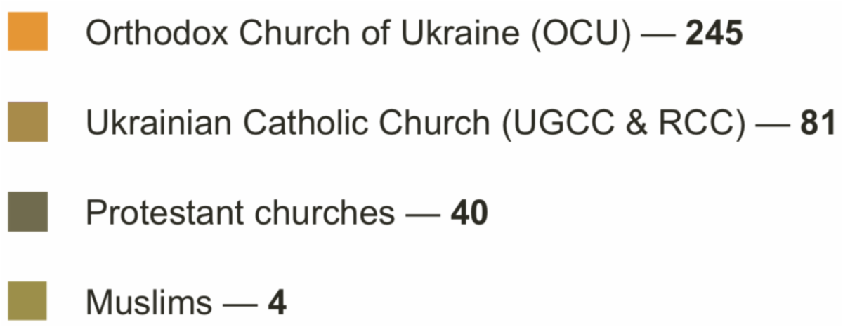 Interfaith Council on Military Chaplaincy under the Ministry of Defense of Ukraine coordinates the work of chaplains in Ukraine. There is also a coordinating body for the Ukrainian churches and religious organizations – the All-Ukrainian Council of Churches and Religious Organizations (UCCRO), which includes 15 major religious organizations representing over 95% of religious groups in the country. Its members represent a wide variety of faiths, including Orthodox, Catholic, Protestant, Jewish, and Muslim communities.