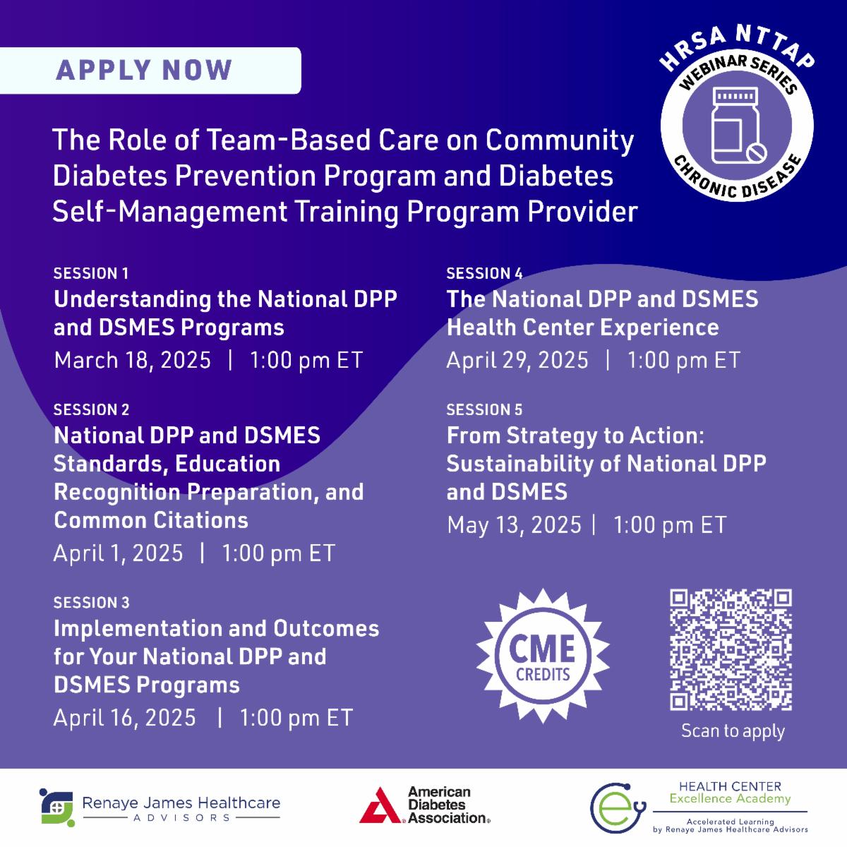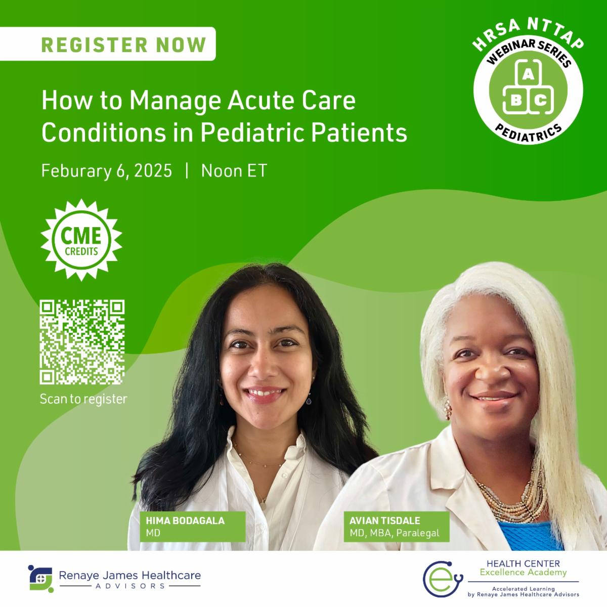 Join us for free, expert-led healthcare technical training webinars and learning collaboratives hosted by Renaye James Healthcare Advisors. Our upcoming HRSA National Technical Training and Assistance Partner (NTTAP) sessions will help healthcare providers stay on top of the latest clinical best practices and innovations. These opportunities are perfect for enhancing skills and improving patient service delivery within your community.