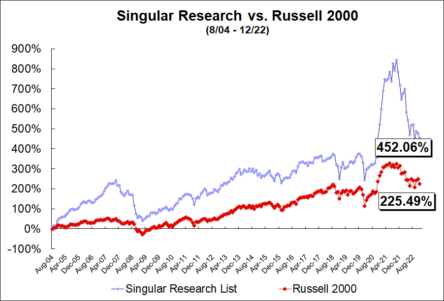 Singular Research is well-known for its independent, performance-based, unbiased, non-banking, coverage of undercovered small and micro-cap equities, serving over 110 institutional clients with $60 billion in assets under management since 2004.